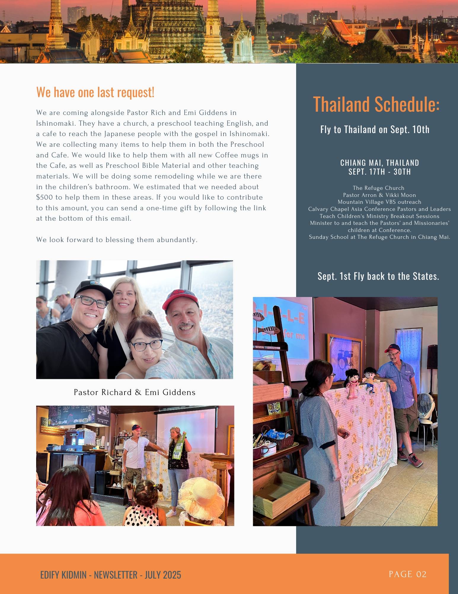 Welcome to Edify KidMin. Our monthly email enables you to follow our ministry journey as we train, travel, and equip the church to teach and reach children with the gospel. Subscribe to our newsletter.